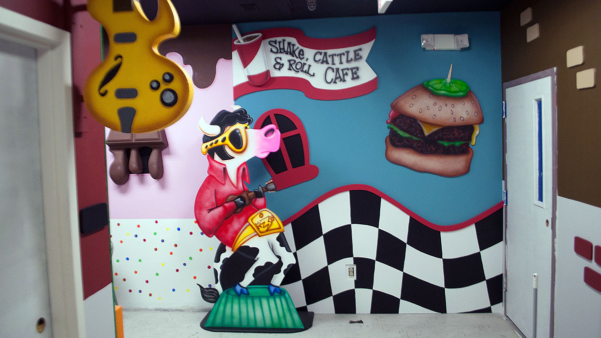As the founder and creative director of Imagination Atmospheres, Rick spent more than two decades designing large-scale themed environments and murals for venues nationwide. Today, he works from his studio in the Atlanta area, focusing on custom, hand-painted murals for retail spaces, restaurants, schools, churches, theaters, museums, aquariums, pediatric offices, and more.