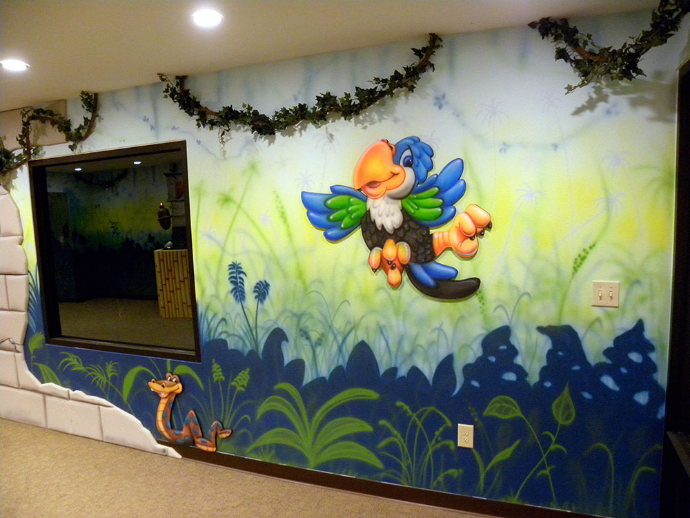 Airbrushed and hand-painted wall murals for businesses, offices, schools, churches, and home studios. From playful cartoon characters to realistic scenic landscapes, every design is tailored to your space, brand, and vision. Murals can be painted directly on your walls or created on removable panels for easy installation. Whether you’re transforming a restaurant, classroom, or office lobby, your wall becomes a work of art that inspires and impresses.